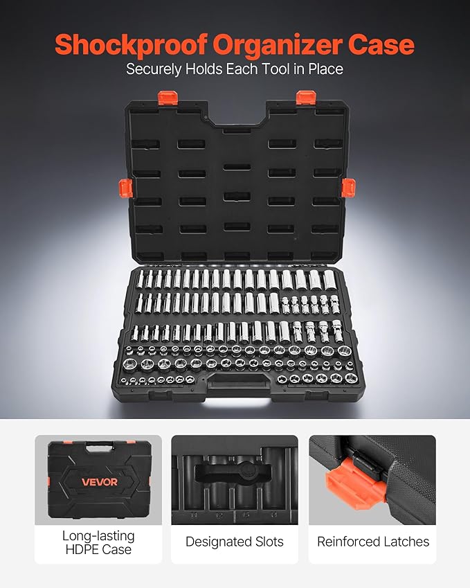 - Convenient Storage Case: Our metric socket set comes with a durable, drop-resistant case with custom shockproof slots to keep tools secure. The reinforced latch design ensures secure storage, keeping tools organized and easy to access
