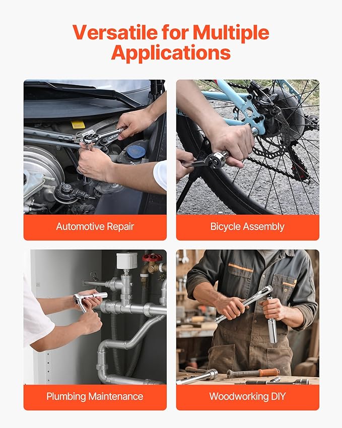 - Versatile Applications: This mechanic tool set is highly versatile, ideal for automotive repair, bike assembly, plumbing, woodworking, and DIY projects, easily handling daily maintenance, home tasks, and professional jobs