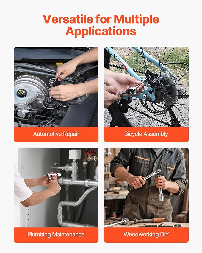 - Versatile Applications: This mechanic tool set is highly versatile, ideal for automotive repair, bike assembly, plumbing, woodworking, and DIY projects, easily handling daily maintenance, home tasks, and professional jobs
