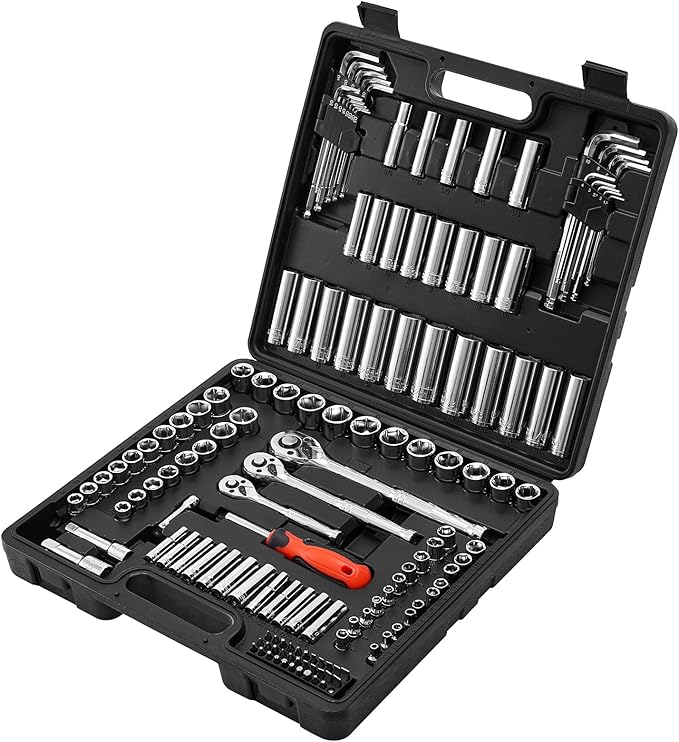 VEVOR Socket Set, 149 Pieces, 3/8 & 1/4 & 1/2 inch Drive Socket and Ratchet Set, SAE and Metric, Deep and Shallow, Mechanic Tool Kit with Bits, Accessories, Storage Case, CR-V Alloy Steel, for Repair