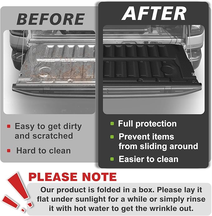 - Function & Why Us: Add TripleAliners' tailgate mat to protect your tailgate from scratches and dirt while maintaining a clean, OEM look. Provide protection against scratches, damage, and fading with the non-slip surface