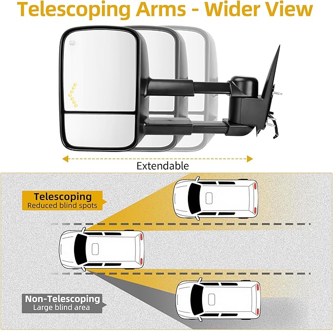 - 5. Optimized Performance Tips: For vehicles with memory mirror systems, disable DIC memory to ensure flawless power adjustment and heating; professional install recommended for 2003-2007 models to maximize telescoping fold and turn signal reliability