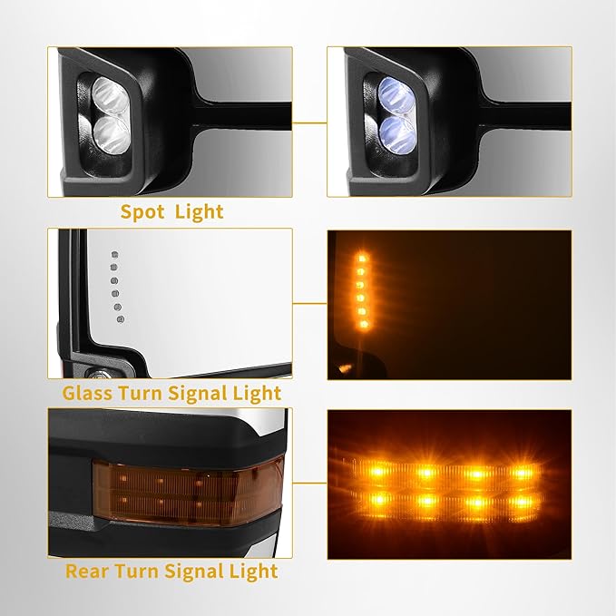 - Compatibility: These telescoping towing mirrors are designed for 2007-2014 Chevy Silverado, GMC Sierra (2500HD/3500HD), Tahoe, Suburban, Avalanche 1500, and Yukon XL/Denali models; Durable pickup accessories designed to enhance visibility while towing