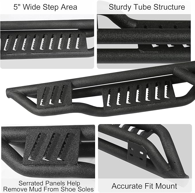 - Stylish & Protective Design: Serrated pattern designed side steps fit for Tundra Crew Cab 2007-2021 can seamlessly tuck against your vehicle. Besides upping your truck’s rugged off-road look, they also act as a tough barrier—effectively protecting the rocker panel from potential damage like scrapes or dings